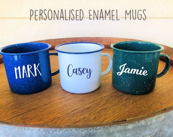 Engraved 500ml White Enamel Camping Mug Personalised Favours